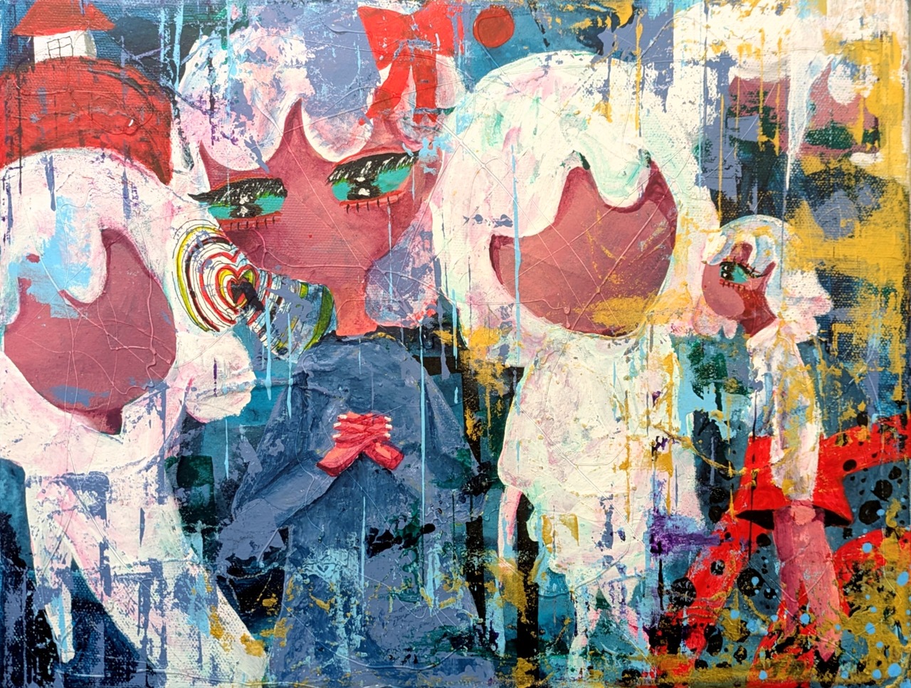 ・画材:キャンバス、和紙、アクリル絵の具、修正液、ペン