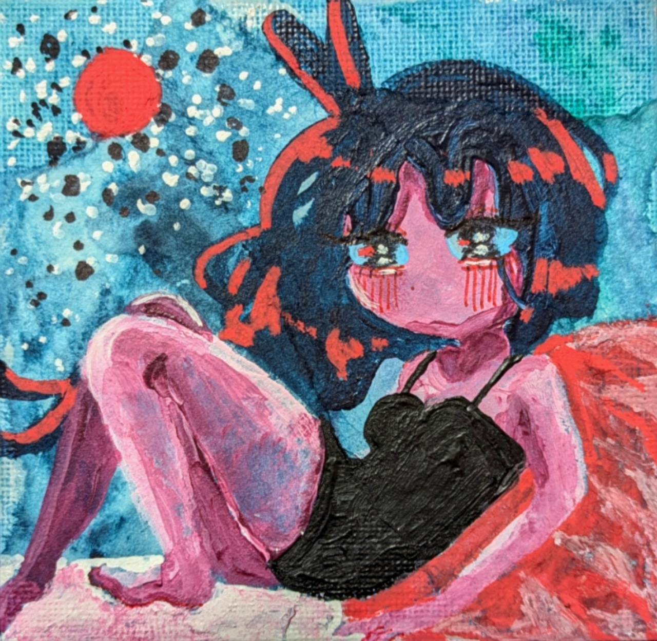 ・画材:キャンバス、和紙、アクリル絵の具、修正液、ペン