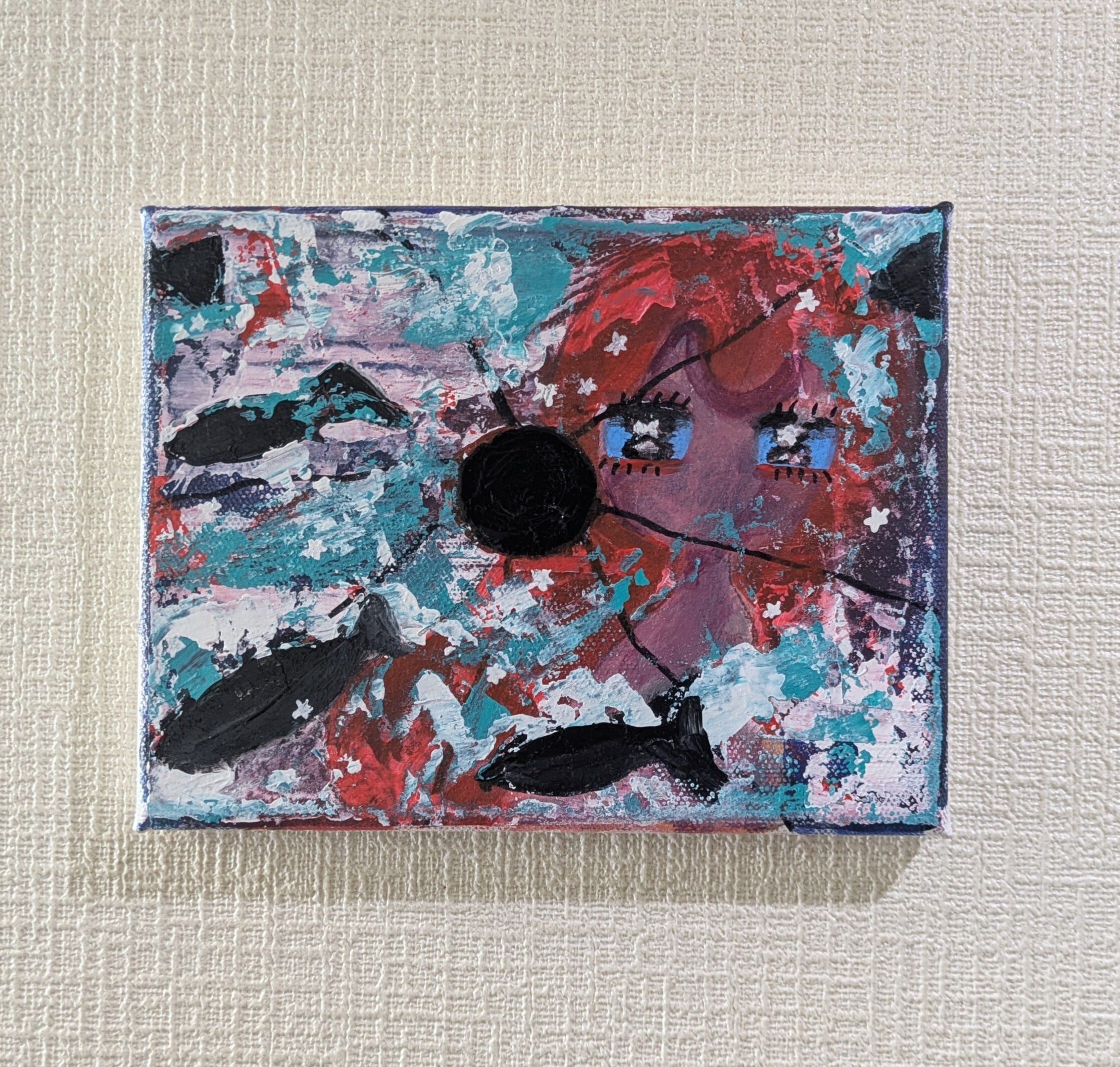 ・画材:キャンバス、和紙、アクリル絵の具、修正液、ペン