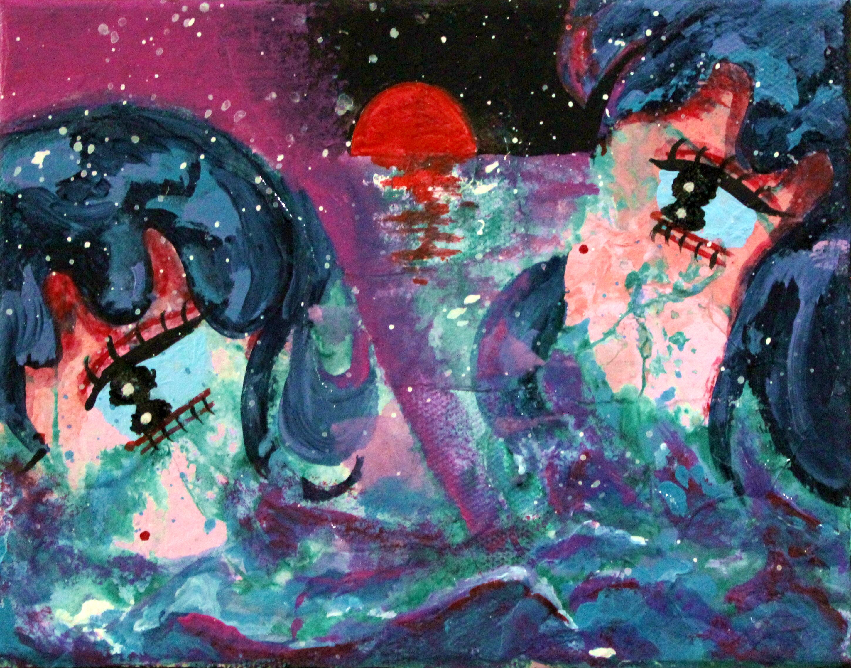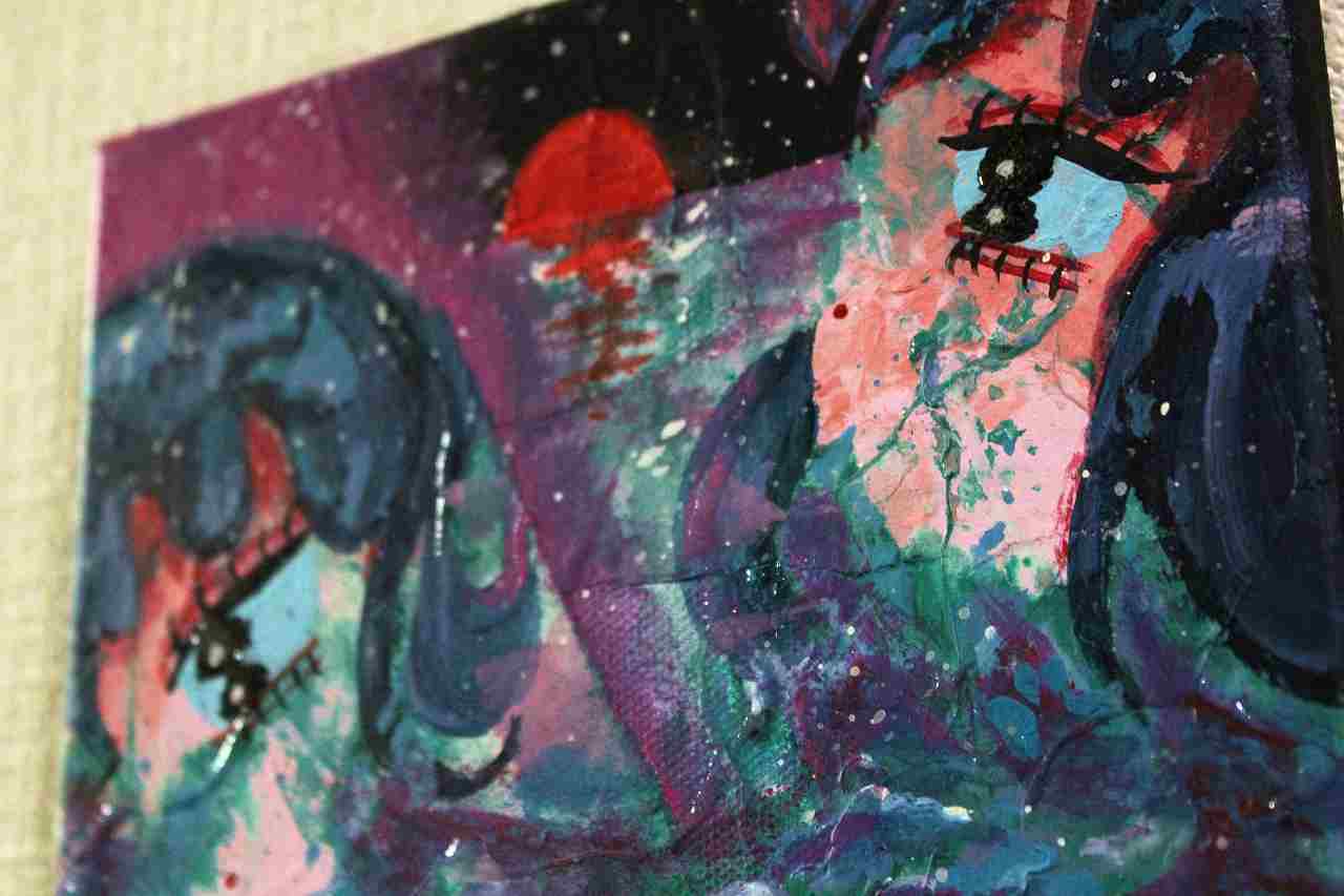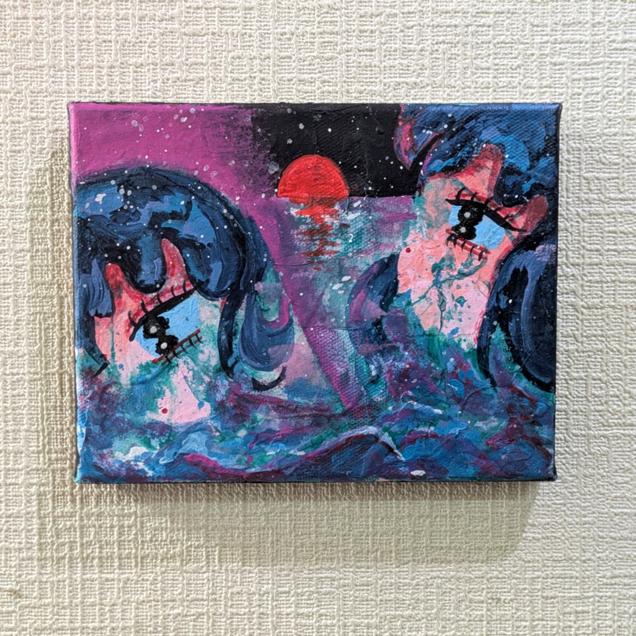 ・画材:キャンバス、アクリル絵の具、修正液、ペン、色鉛筆