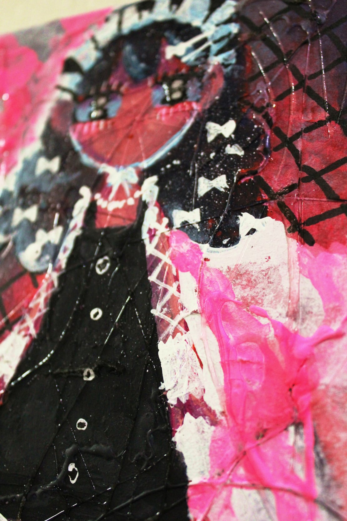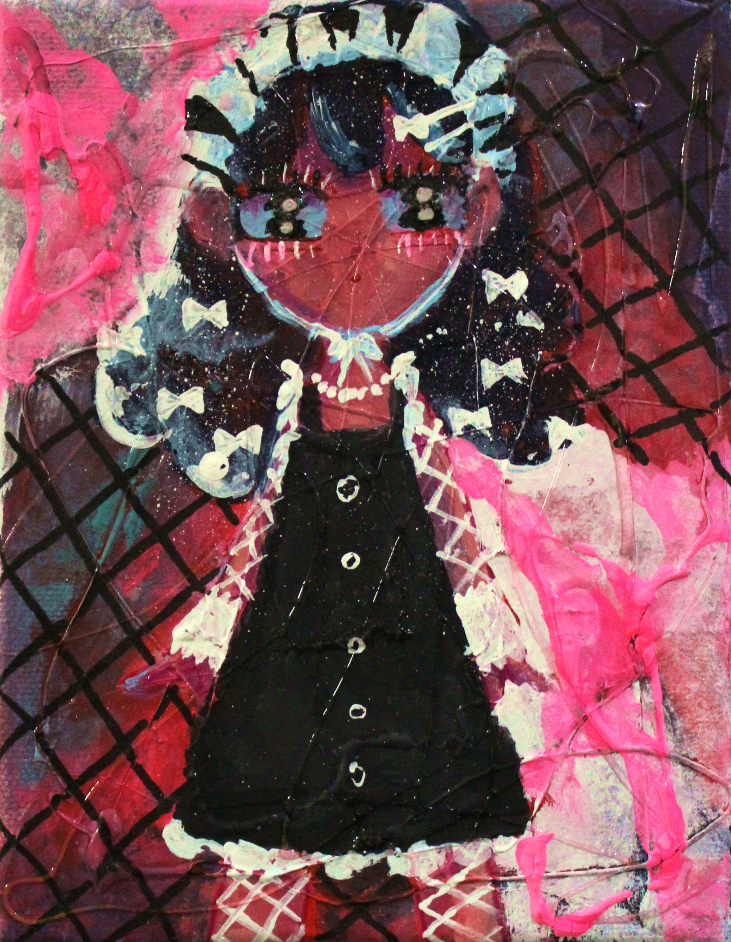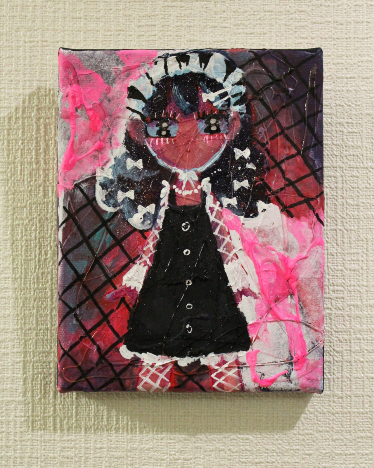 ・画材:キャンバス、アクリル絵の具、修正液、ペン、色鉛筆