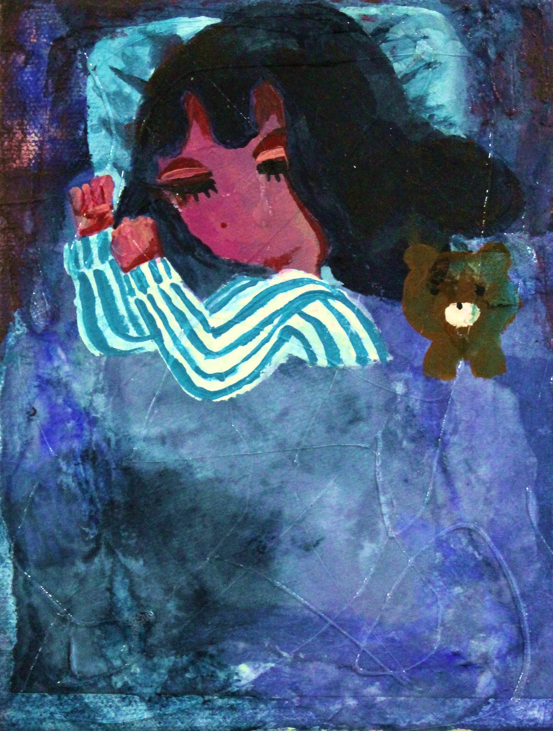 ・画材:キャンバス、アクリル絵の具、修正液、ペン、色鉛筆