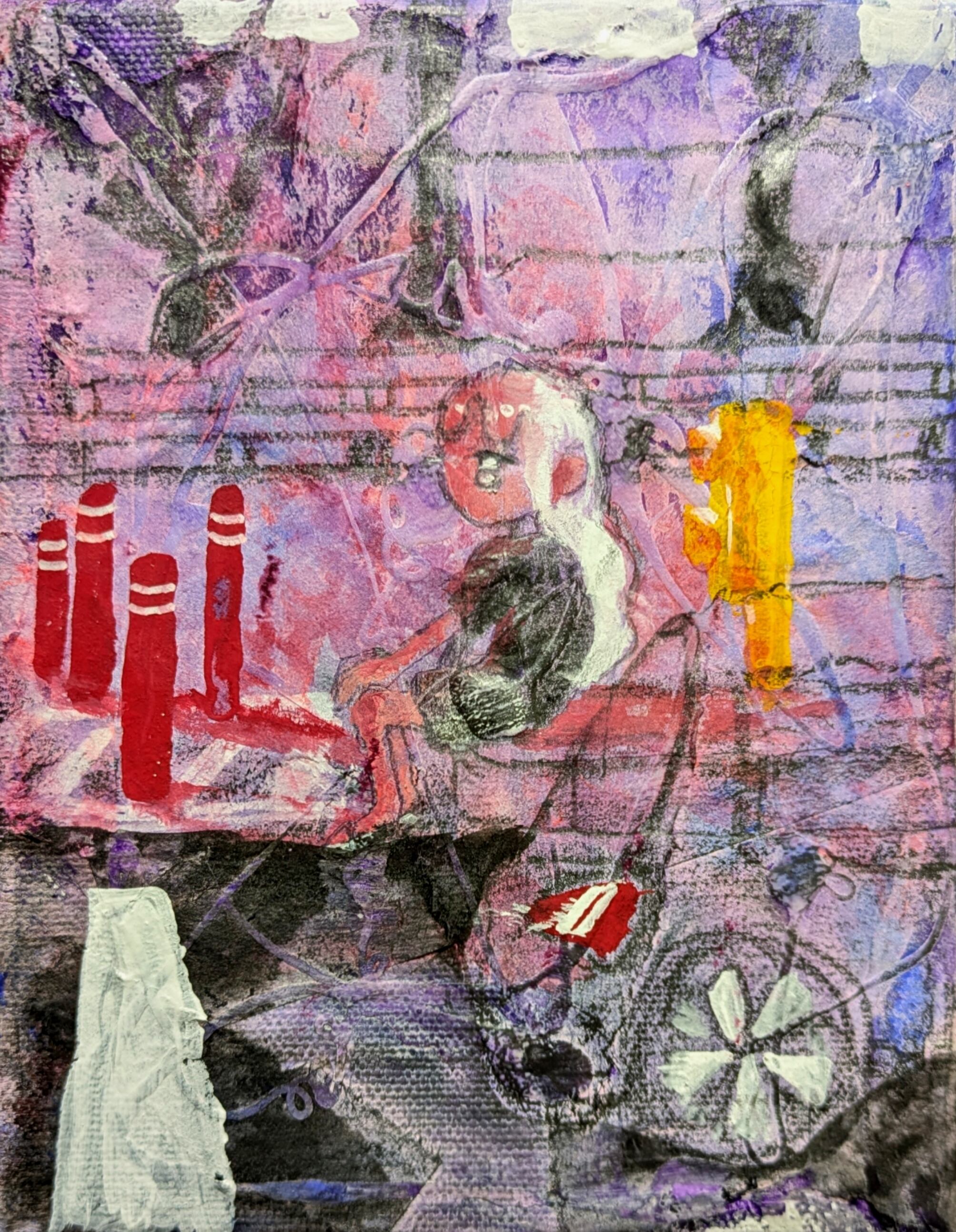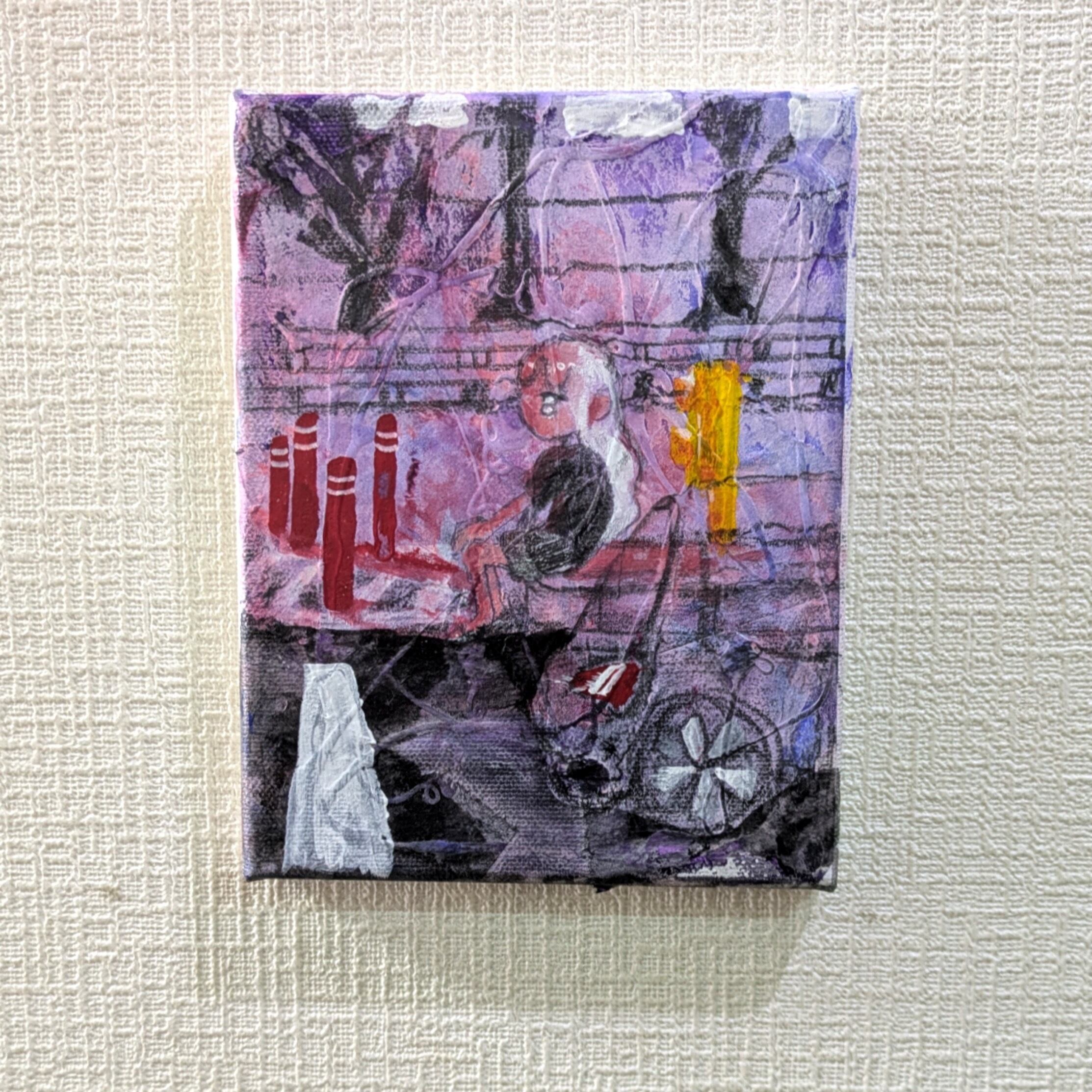 ・画材:キャンバス、和紙、アクリル絵の具、修正液、ペン、色鉛筆