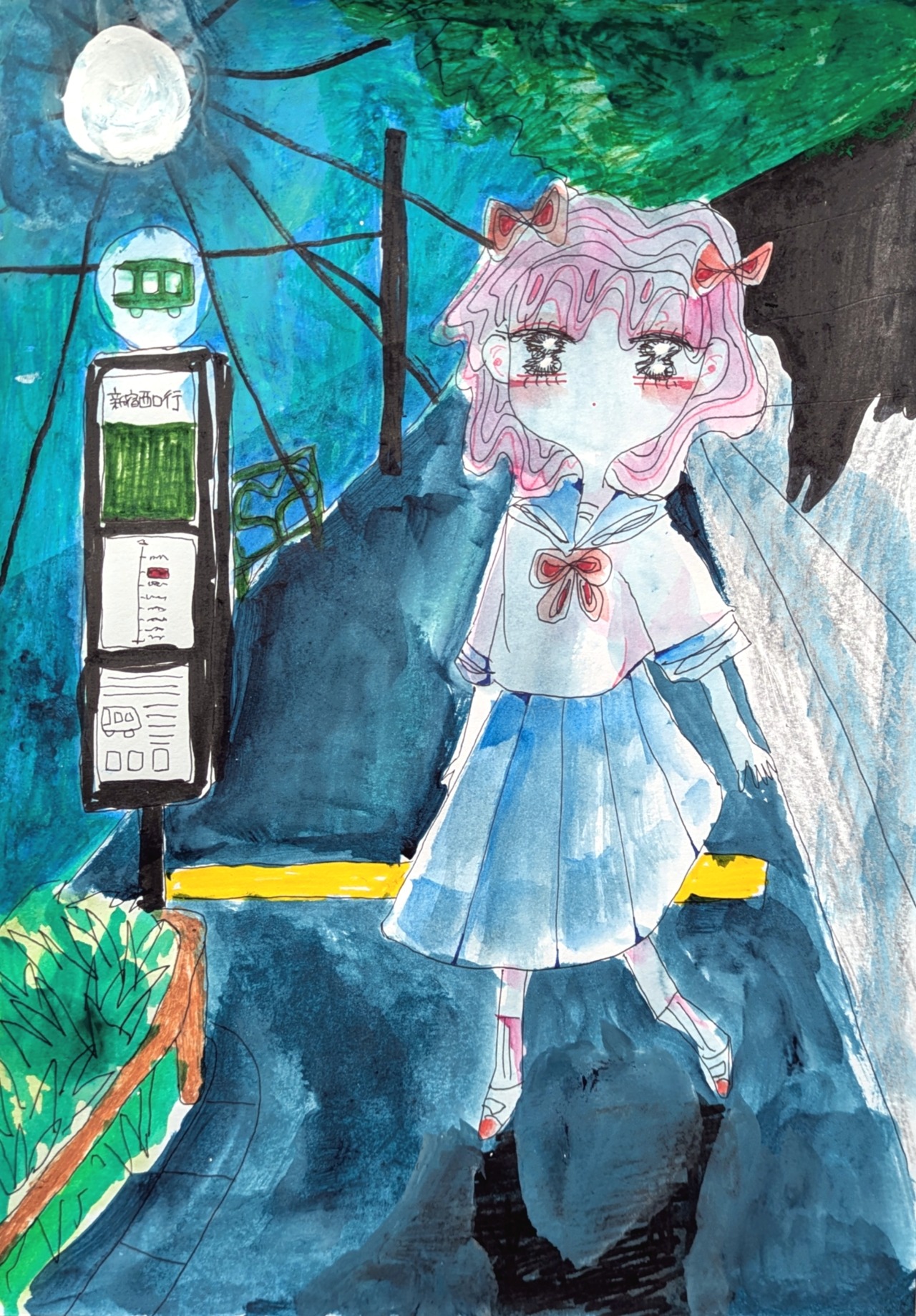 ・画材:紙、アクリル絵の具、修正液、ペン、色鉛筆